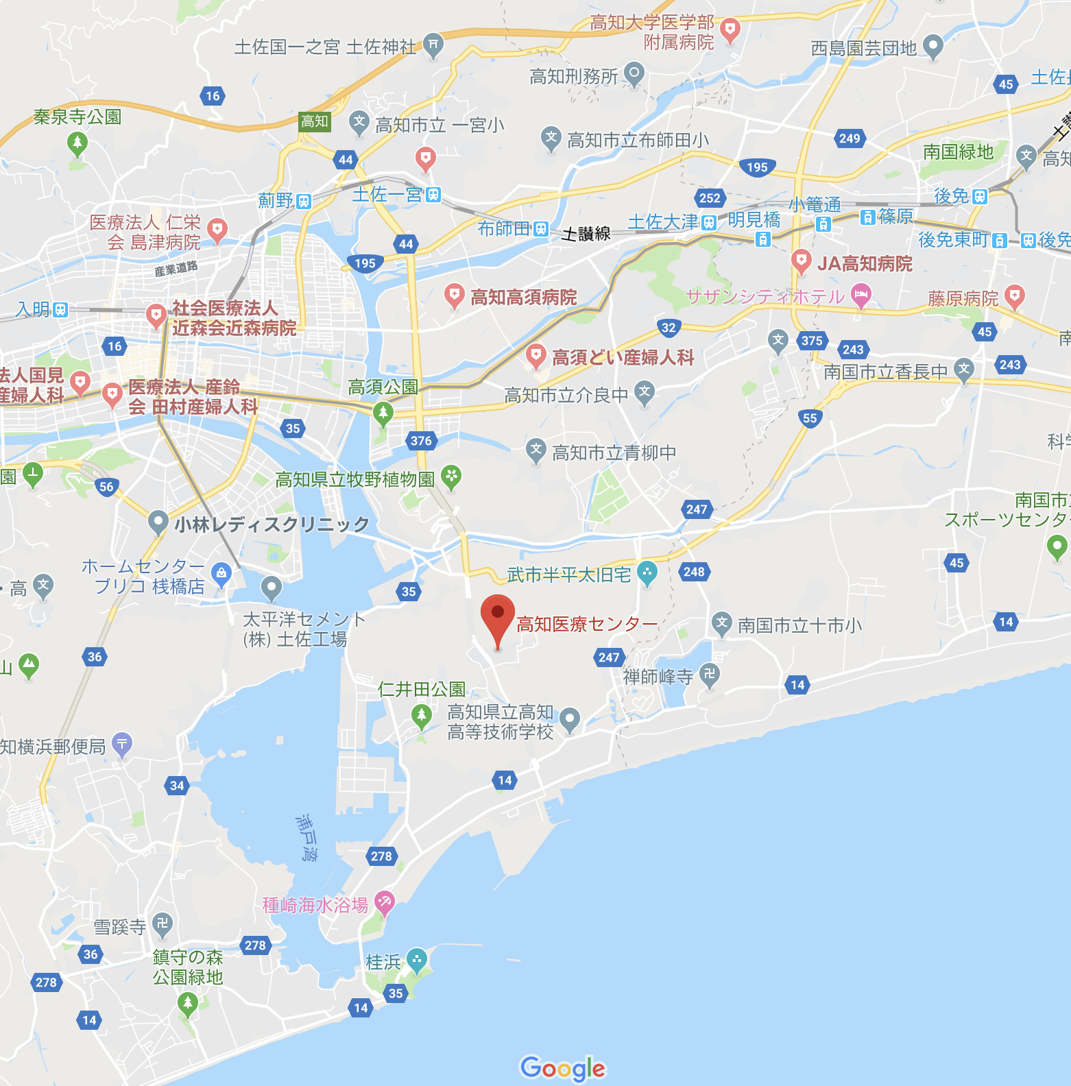 周辺地図 高知県・高知市病院企業団立 高知医療センター 〒781-8555 高知県高知市池2125-1 TEL:088-837-3000 FAX:088-837-6766 アクセス バスの場合 高知駅バスターミナル から約30分 (高知医療センター・高知県立大学方面行き) 自動車の場合 JR高知駅から5.6km(約15分) 高知ICから6.6km(約15分)
